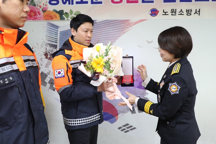 [시민일보 = 박소진 기자] 노원소방서는 지난 2일 현장대응단 구조대 2팀에 ‘칭찬받은 민원공무원’ 포상을 수여했다고 3일 밝혔다.