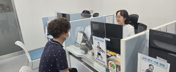 | ▲ 양천구 금연클리닉 프로그램에 참여해 상담받고 있는 구민. (사진=양천구청 제공) |