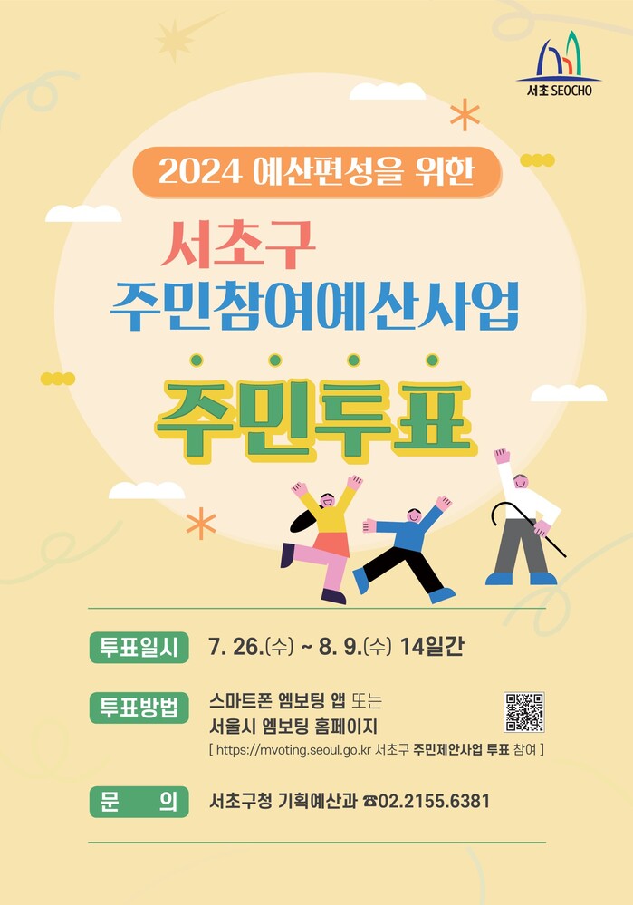 [시민일보 = 이대우 기자] 서초구(구청장 전성수)가 오는 26일부터 8월9일까지 2024년 예산 편성을 위한 주민참여예산 전자투표를 진행한다.