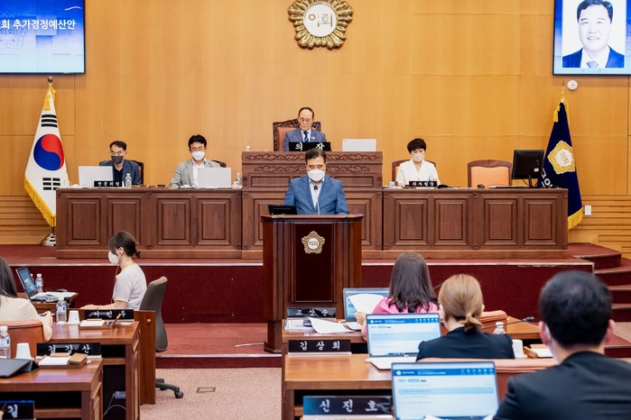 | ▲ 제254회 광진구의회 임시회에서 장길천 의원이 추경예산안 수정안을 제안하고 있다. |