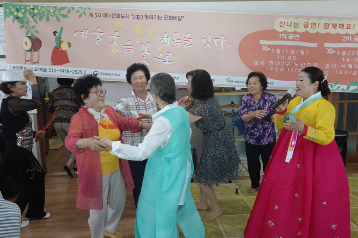 이달 중 개최되는 찾아가는 문화배달 사업은 ▲18일 해인노인주간보호센터 ▲19일 가좌동 마을회관 ▲20일 광천 소암리 마을회관 ▲21일 거북이마을 전통회관 ▲23일 광천 잇슈창고 ▲25일 홍동면 모전 마을회관 ▲26일 에덴광천요양원 ▲27일 결성 할머니 경로당 ▲28일 양지노인요양주간보호센터 ▲29일 구룡리 서구 경로당 등 총 10회에 걸쳐 공연이 펼쳐진다.