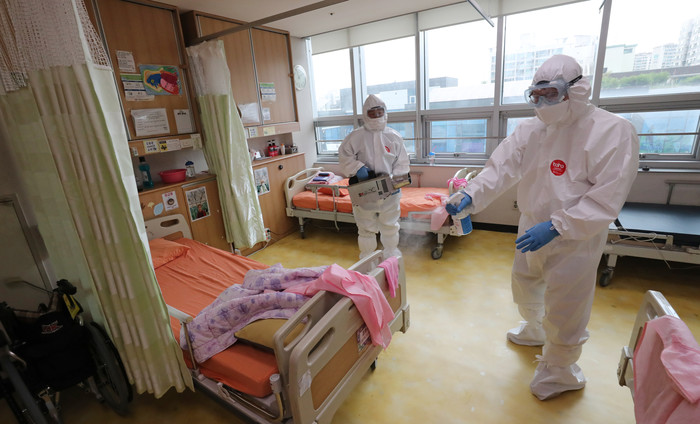 | ▲ 14일 서울 송파구 방역관계자들이 구립송파노인요양센터에서 방역 활동을 하고 있다. (사진제공=연합뉴스) |