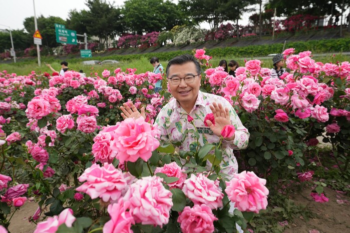 | ▲ 서울장미축제를 찾은 류경기 구청장의 모습.(사진=중구청 제공) |