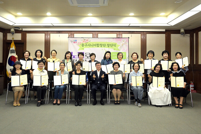 중구구립시니어합창단은 지난 5월 공개 모집과 오디션을 통해 선발된 만60세부터 75세 이하 중구민 여성단원 19명과 단장, 지휘자, 반주자 등 총 22명으로 구성됐다.