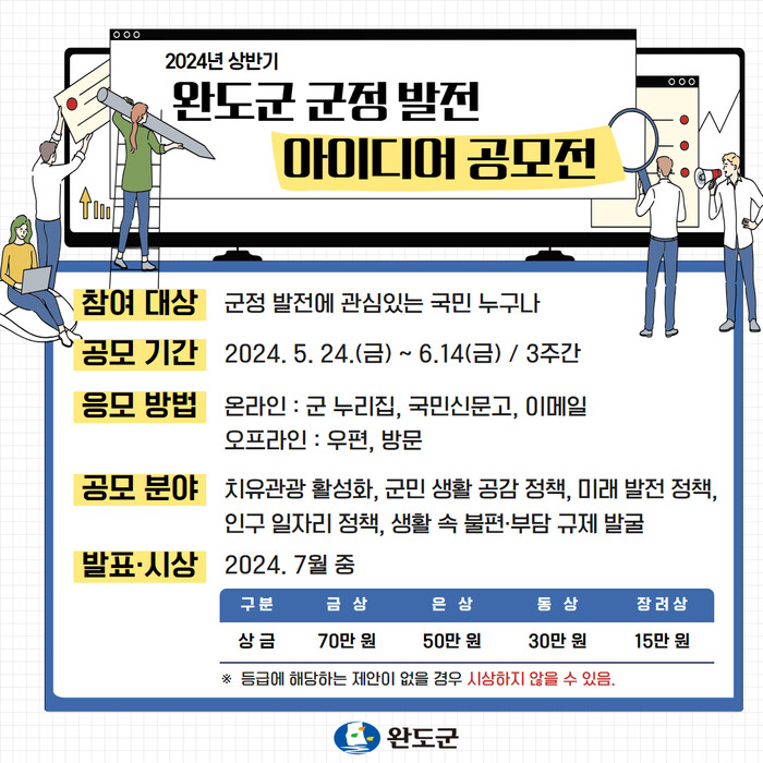 군은 창의적인 아이디어를 행정에 반영해 지역 발전을 도모하고 소통ㆍ참여 행정을 실현하기 위해 공모전을 마련했다.