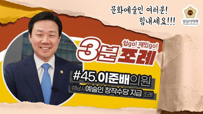 성남시의회(의장 윤창근)는 17일 ‘성남시의회 3분 조례’ 마흔다섯 번째 영상을 시의회 공식 SNS에 게시했다.