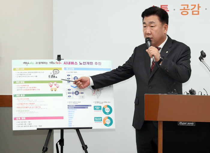 이범석 청주시장은 20일 언론브리핑을 통해 시민이 편리한 노선체계 구축을 목표로 진행 중인 시내버스 노선개편(안)의 방향과 중점 추진전략을 발표했다.