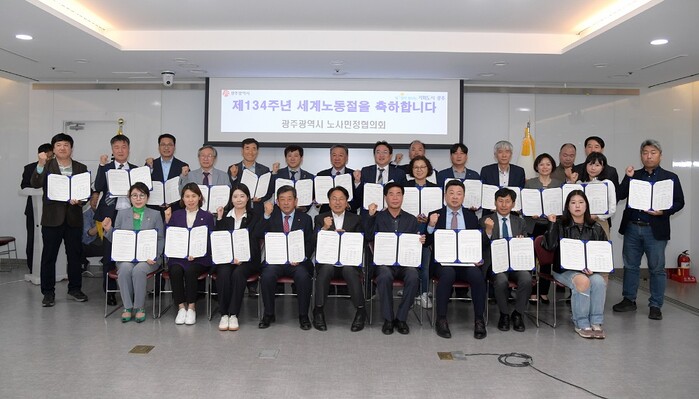 [광주=정찬남 기자] ‘일하는 모든 사람이 존중받는 도시 광주’를 만들기에 광주지역 노사민정이 함께 한다.