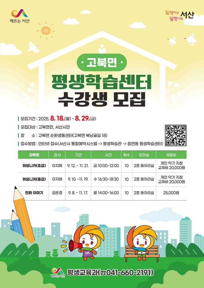 추가 지정된 부석면ㆍ고북면 평생학습센터는 18일부터 29일까지 하반기 수강생을 모집한다.
