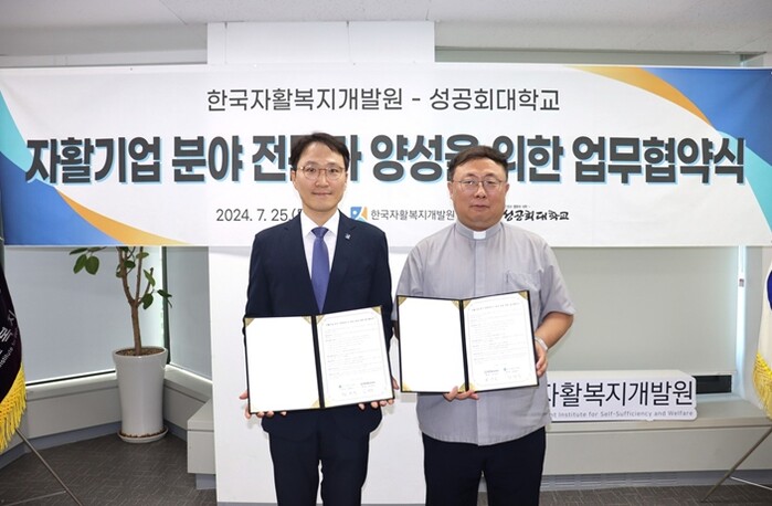 한국자활복지개발원(원장 정해식, 이하 개발원)과 성공회대학교(총장 김경문)는 지난 7월 25일, ‘자활기업 분야 전문가 양성을 위한 업무협약’을 체결했다고 밝혔다.