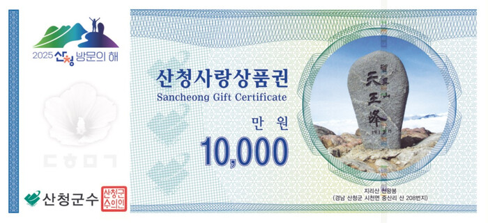 새로운 디자인의 산청사랑상품권은 지역 내 금융 기관에서 1인당 최대 월 30만원까지 구매 가능하며 기존 디자인의 상품권과 함께 사용할 예정이다.