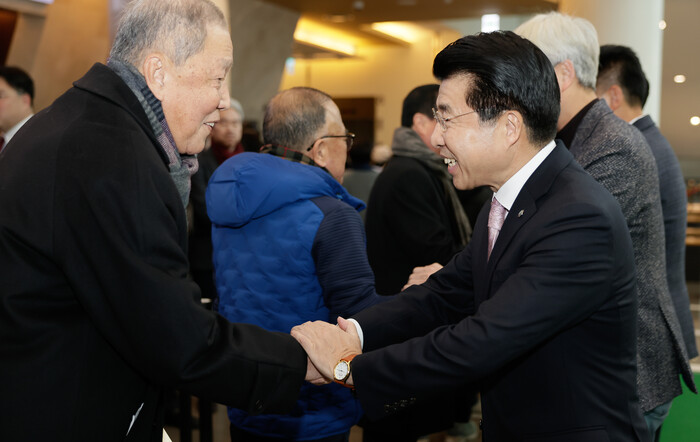 | ▲ 2024년 신년인사회에서 구민과 악수 나누는 서강석 구청장. (사진=송파구청 제공) |