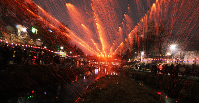 | ▲ 2024 정월대보름 행사에서 낙화놀이가 진행되고 있다. (사진=노원구청 제공) |
