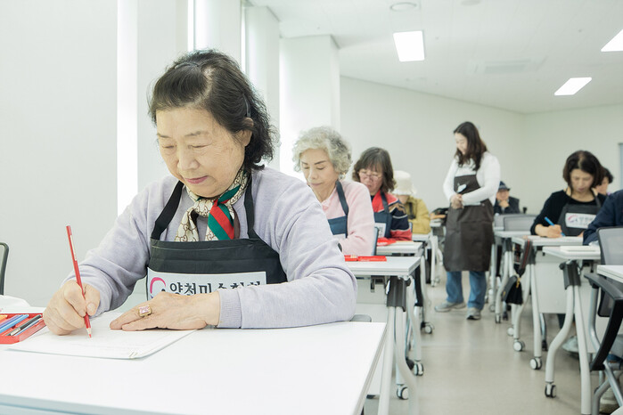 | ▲ 문화진흥기금 공모 사업인 시니어미술교실에서 교육받는 수강생.(사진=양천구청 제공) |