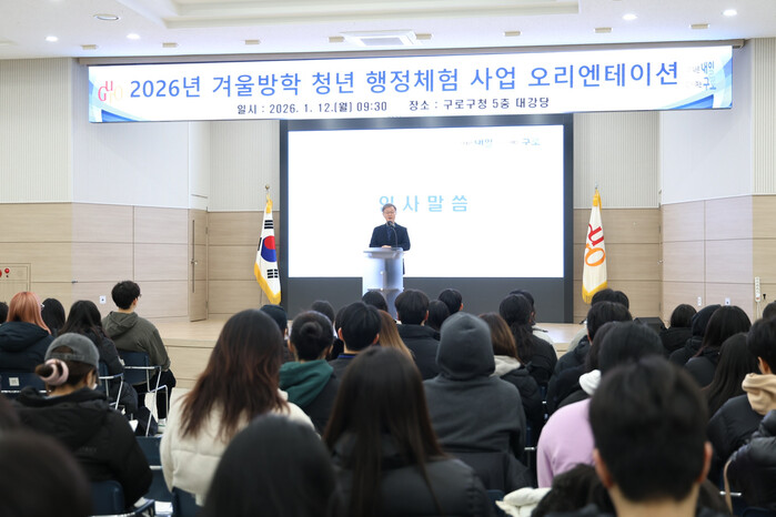 [시민일보 = 박소진 기자] 구로구(구청장 장인홍)가 12일 구청 강당에서 2026년 겨울방학 청년 행정체험사업 오리엔테이션을 열고 본격적인 시작을 알렸다.