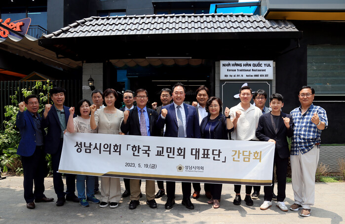 성남시의회 방문단은 이날 오전에‘대한민국 하노이 경제단체’「코참」의 홍선 회장 등 임직원과의 간담회에서“만리타향 먼 이곳에서 역경에 굴하지 않고 발전해 나가는 여러분이 대단하다”면서 “베트남에서 경제활동을 희망하는 성남시 기업이나 시민에 대한 안정적인 경제활동 지원을 요청한다”고 밝혔다.