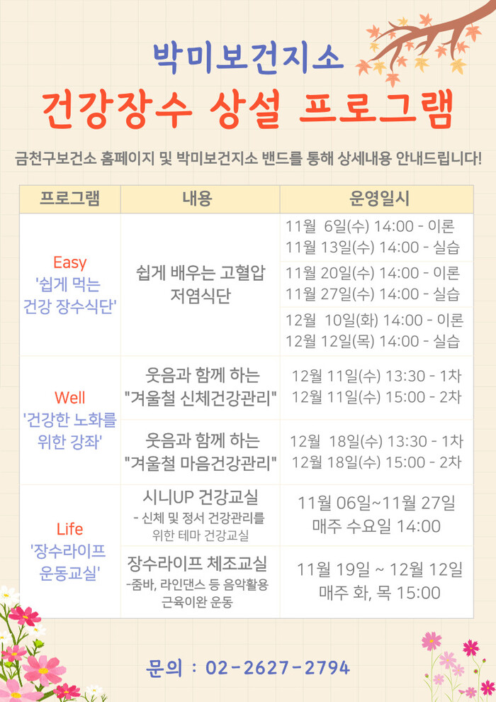 | ▲ 박미보건지소 Easy Well Life 프로그램 안내문. (사진=금천구청 제공) |