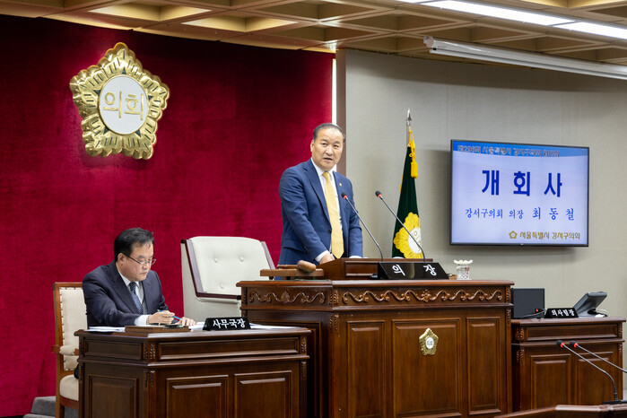 | ▲ 최동철 의장이 제296회 임시회 개회사를 하고 있다. (사진=강서구의회 제공) |