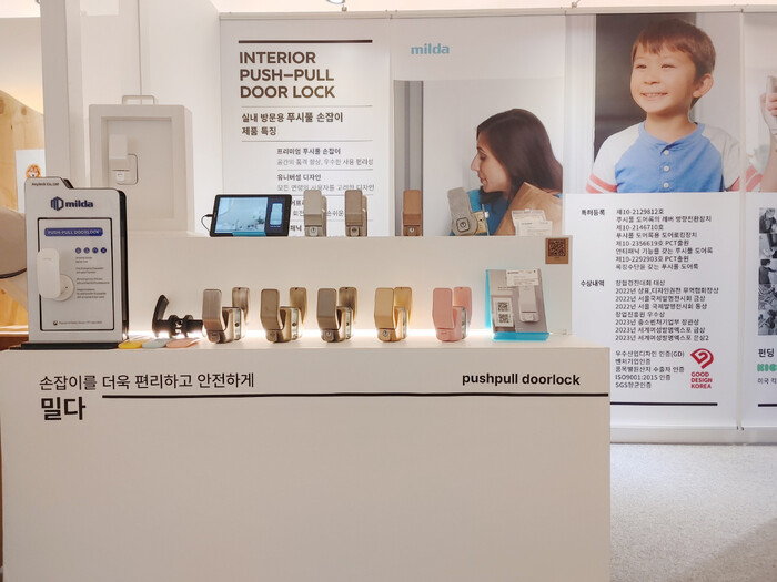 푸시풀 방문손잡이는 극 초기 아이템으로, 디자인과 기능을 홍보하고자 2022년 140개국 유저가 있는 미국 킥스타트캠페인을 통해 홍보하고, 17개국의 소비자에게 수출하고 사용성을 검증했다. 국내는 코리아빌드 건축박람회를 통한 홍보를 이어가고 있다. ‘Milda 푸시풀 손잡이’는 인테리어, 건설분야의 사업자몰과 소비자의 네이버 쇼핑몰을 통해 구매 가능하다.
