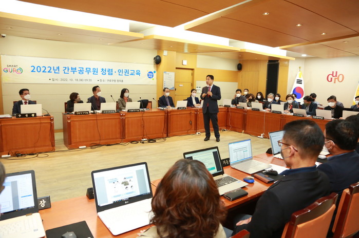 | ▲ 2022년 10월18일 5급 이상 간부 공무원을 대상으로 반부패·청렴교육이 진행되고 있는 모습. (사진=구로구청 제공) |