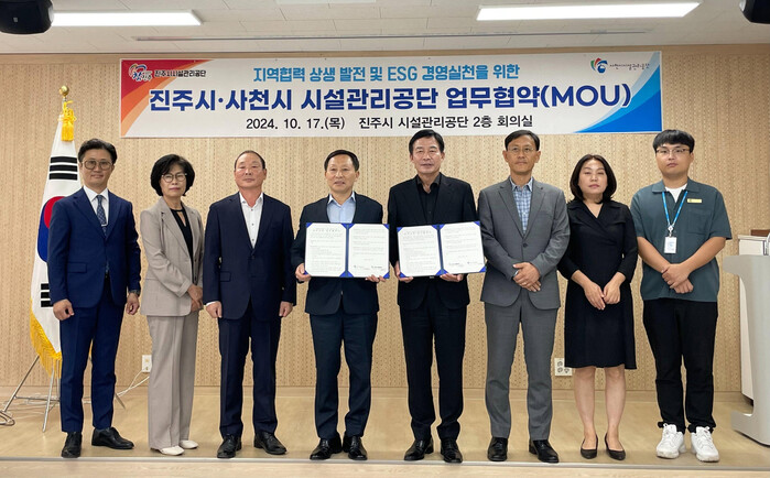 진주시 시설관리공단과 사천시 시설관리공단은 17일 진주시 시설관리공단 청사에서 양 지역 발전을 위한 활발한 교류협력과 효율적인 ESG경영을 위한 업무협약을 체결했다.