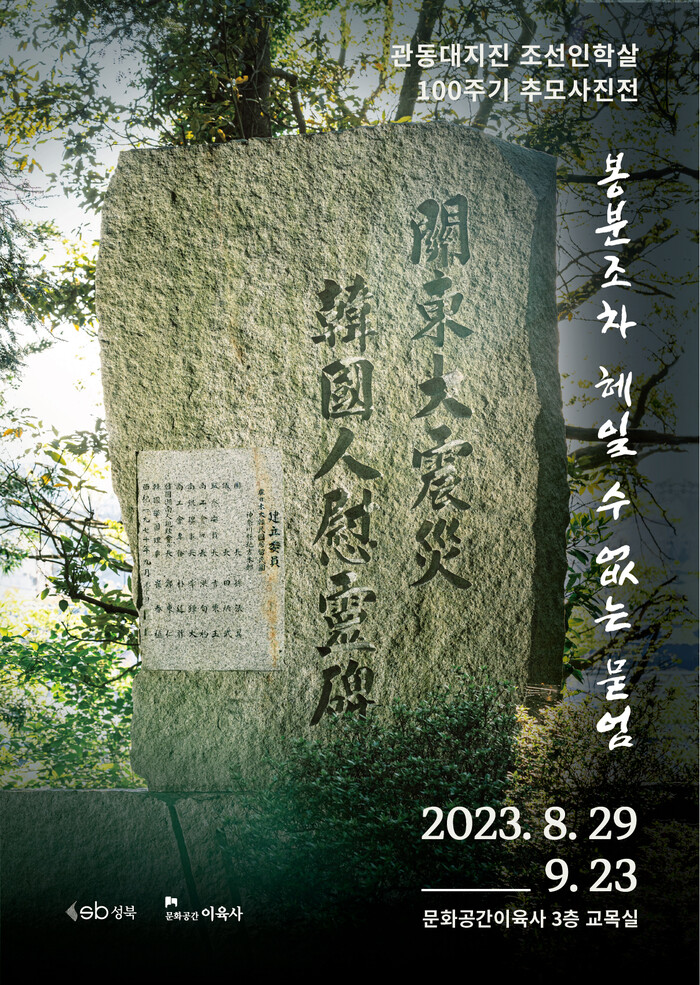 [시민일보 = 홍덕표 기자] 서울 성북구(구청장 이승로)가 관동대지진 조선인 학살 100주기를 맞이해 29일부터 오는 9월23일까지 문화공간이육사(종암로21가길 36-1) 3층 기획전시실에서 천승환 사진작가의 추모 사진전 '봉분조차 헤일 수 없는 묻엄'을 개최한다.