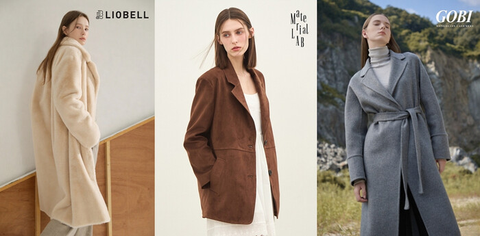 | ▲ 현대홈쇼핑이 역시즌 판매에 들어가는 주요 브랜드 '리오벨'(왼쪽부터), '머티리얼랩', '고비'의 대표 상품. (사진=현대홈쇼핑 제공) |