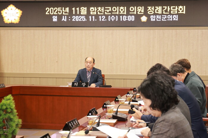 정봉훈 의장은 “어느덧 을사년 한 해를 마무리하고 병오년 새해를 맞이하기 위한 새로운 시작을 준비하여야 하는 시기에 다다른 만큼, 2026년도 세입세출예산안 심의와 군정 추진을 위한 다양한 사전절차를 적극적으로 이행하여 앞으로 있을 제295회 합천군의회 제2차 정례회 심의에 만전을 기하여 주실 것을 당부한다”고 전했다.