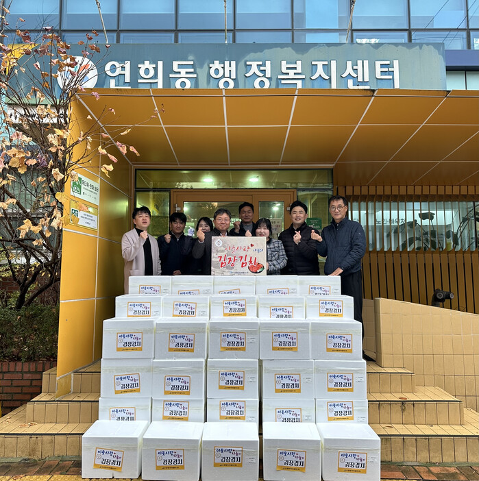 [인천=문찬식 기자] 인천 서구 연희동 행정복지센터(동장 김형자)는 지난 27일 인천국제공항고속도로를 관리·운영하는 신공항하이웨이(주)(대표이사 방종구)로부터 300만 원 상당의 김장김치 50박스(10kg)를 기탁받았다고 밝혔다.