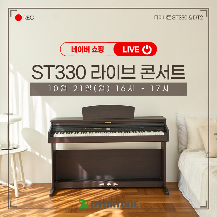 이번 라이브는 오후 4시부터 한시간 동안 진행되며 프리미엄 전자피아노 ST330의 네이버 런칭 특가할인, 교육입문용 DT2 라이브 특가 할인을 진행한다.