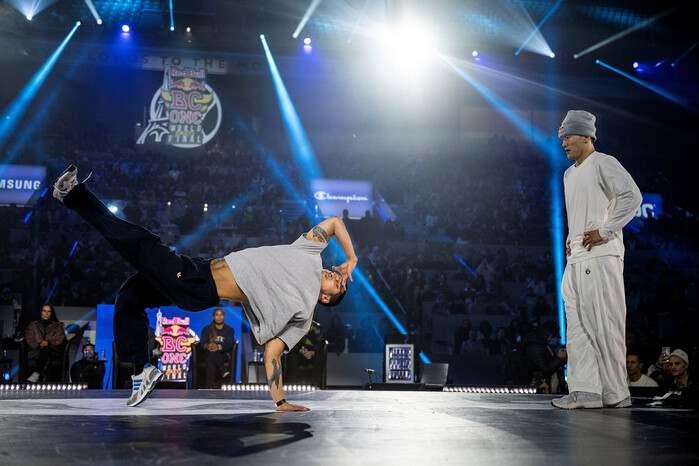 | ▲ 도봉구청 브레이킹팀 소속 김홍열(홍텐) 선수가 결승 무대에서 화려한 브레이킹 기술을 선보이고 있다. (사진=도봉구청 제공) |