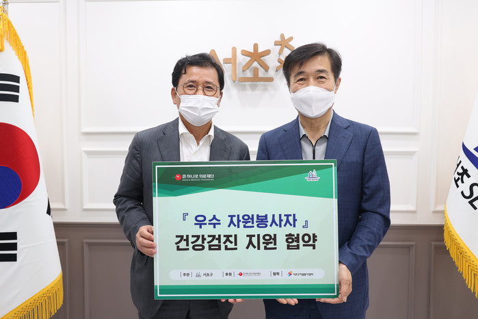 [시민일보 = 이대우 기자] 서울 서초구(구청장 전성수)는 의료법인 하나로의료재단과 서초구자원봉사센터와 함께 관내 우수 자원봉사자들에게 감사를 전달하고 지속적인 봉사활동 동기부여를 위해, 최근 ‘우수 자원봉사자 건강검진 지원사업’ 업무협약을 체결했다.