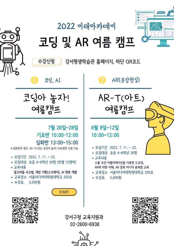 이에 따라 이번 여름캠프는 ▲코딩아 놀자! ▲AR-t(아트) 2개 과정으로 운영된다.