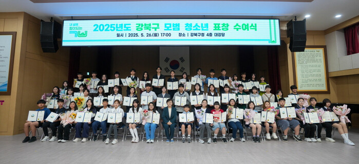[시민일보 = 문민호 기자] 서울 강북구(구청장 이순희)는 최근 구청 대강당에서 '2025년 강북구 모범 청소년 표창 수여식'을 개최했다고 28일 밝혔다.