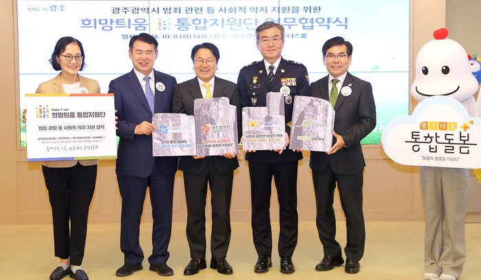 광주광역시(시장 강기정)는 8일 시청 비즈니스룸에서 광주광역시교육청, 광주경찰청, 사회복지법인 굿네이버스 등 4개 기관(단체)과 ‘광주시 범죄 관련 등 사회적 약자 지원을 위한 희망틔움 통합지원단 업무협약’을 체결했다.