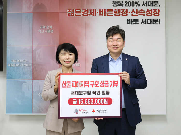 [시민일보 = 이대우 기자] 서울 서대문구청(구청장 이성헌) 직원들이 최근 영남권 산불 피해지역 복구 지원을 위한 구호 성금 1566만원을 기부했다.