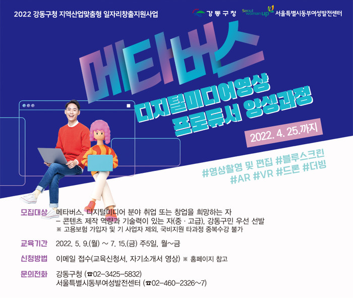 [시민일보 = 이대우 기자]서울 강동구(구청장 이정훈)가 오는 25일까지 ‘메타버스 디지털미디어 프로듀서 양성과정’의 수강생을 모집하고 있다.