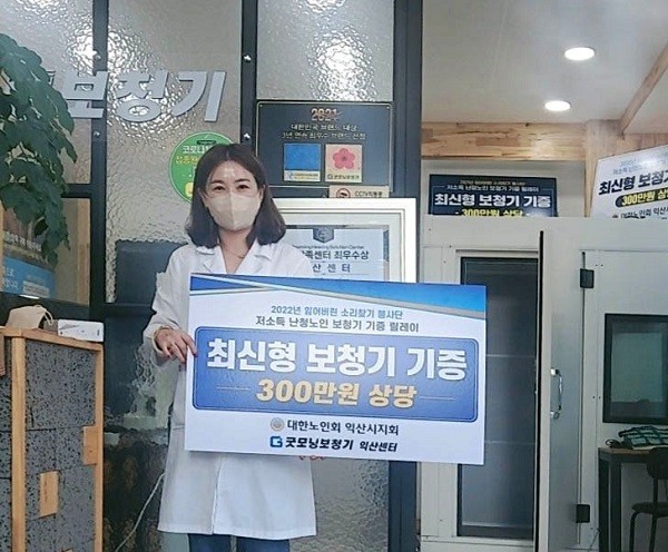 굿모닝보청기 익산센터 김영란 원장은 "고령층으로 접어드는 어르신들이 노인성 난청으로 소리를 잃게 되면 주변인들과의 소통이 어려워지기 때문에 생활하는데 힘들어 하는 경우가 많이 있다”면서 “청력은 한 번 나빠지면 이전의 상태로 다시는 돌아오지 않기 때문에 더 나빠지지 않도록 관리하는 것이 중요하다. 이번 저소득 난청노인 보청기 기증 릴레이 봉사를 통해 가족과 사회로부터 소외받고 계신 난청 어르신들이 다시 소리를 되찾고 소통하시는데 도움이 되었길 바란다”고 전했다.