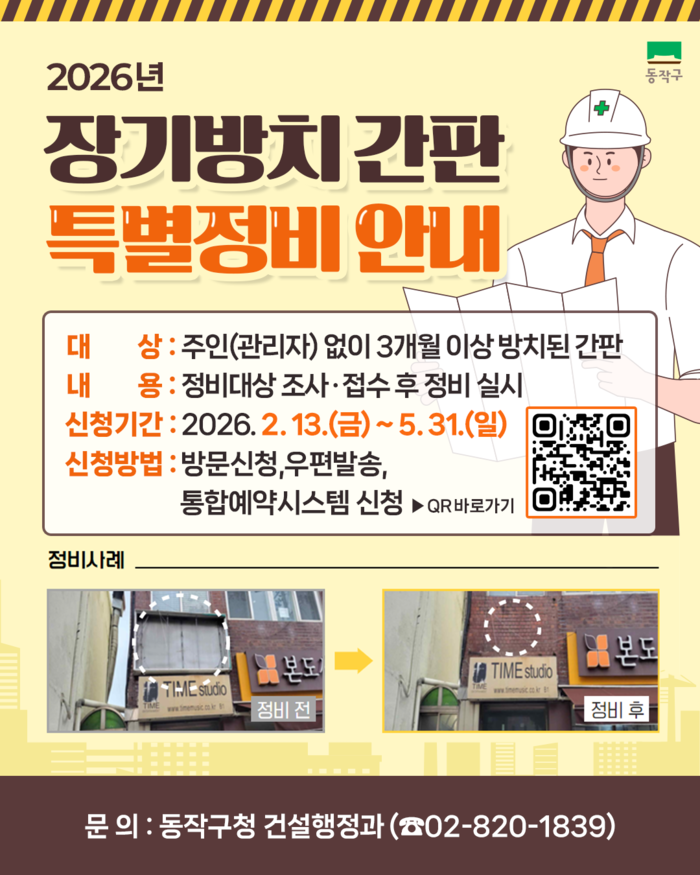 | ▲ 2026년 장기방치 간판 특별정비 안내 홍보 포스터. (사진=동작구청 제공) |
