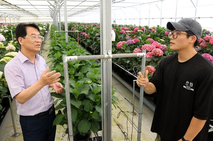 이어 역시 군동면에서 절화수국 재배하우스를 운영 중인 김승찬 대표의 농장을 방문해 가업 2세의 현실에 대해 들었다.