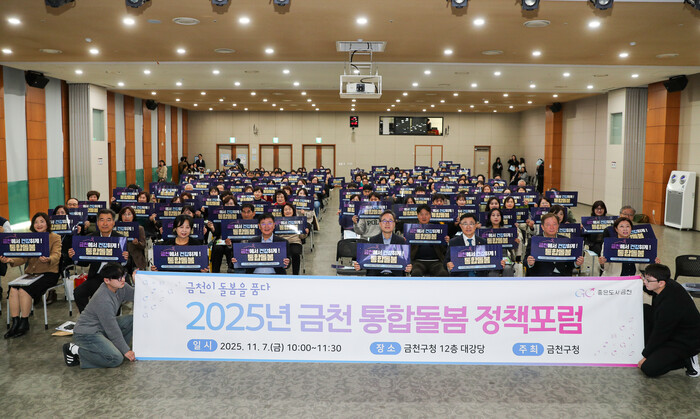 [시민일보 = 여영준 기자] 금천구(구청장 유성훈)는 지난 7일 구청사 12층 대강당에서 보건·복지·의료·돌봄 분야 전문가와 관련 기관, 명예사회복지공무원 등 150여 명이 참석한 가운데 ‘2025년 금천 통합돌봄 정책포럼’을 성황리에 개최했다고 밝혔다.