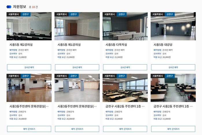 | ▲ 공유누리 홈페이지에서 예약할 수 있는 금천구 공공자원. |