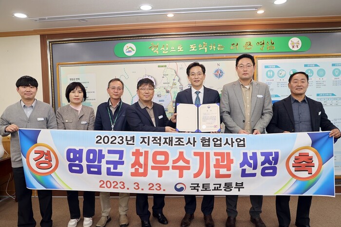 [영암=정찬남 기자] 전남 영암군(군수 우승희)은 전국 자치단체를 대상으로 실시한 ‘2023년 지적재조사 협업사업 우수사례 경진대회’에서 지난 23일 최우수상 및 국토교통부장관 기관표창을 수상했다.