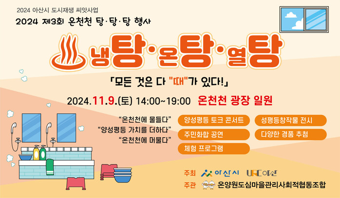 시 관계자는 “이번 행사가 마을공동체 네트워크 연계, 시민 참여형 문화콘텐츠 발굴 및 문화가치 확산으로 원도심이 자생할 수 있는 성장 동력이 되길 바란다”며 “향후 온양 원도심의 지역특화 행사로 발전하길 기대한다”고 밝혔다.