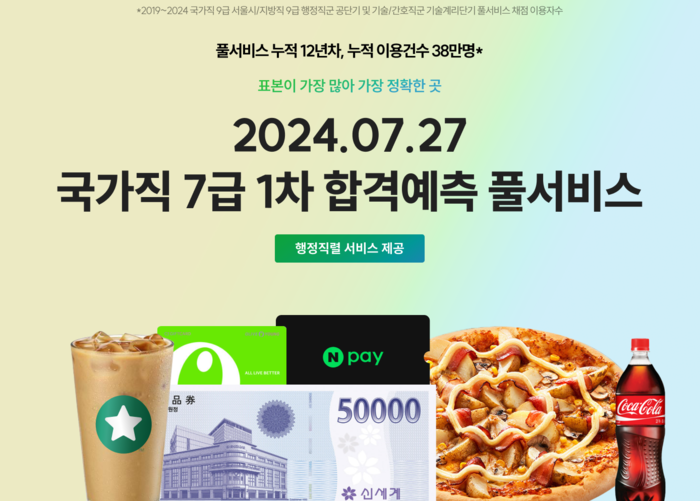 공단기는 응시생들을 위해 직렬별 실시간으로 합격을 예측해 주는 풀서비스를 오픈한다. 예측은 공단기의 분석 프로그램을 통해 누적된 응시 데이터를 기반으로 과목별 성적 분석과 합격컷을 산출하는 형태이다.