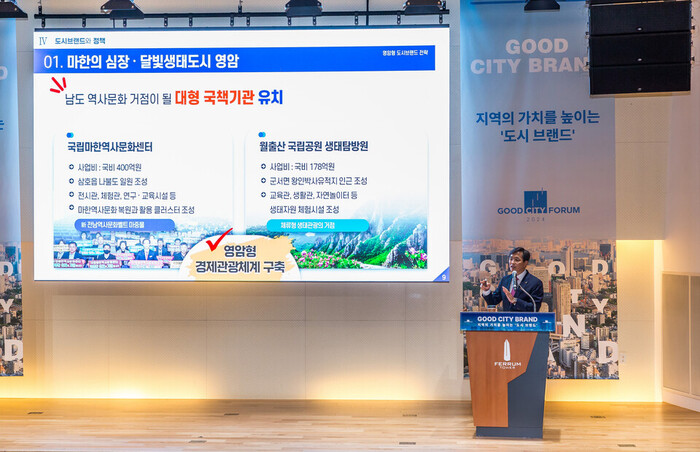 우 군수는 “도시브랜드를 활용해 민선 8기 다양한 혁신 정책을 시행하고 있다”며 ‘마한의 심장ㆍ달빛생태도시’에 입각해 국립마한역사문화센터와 월출산국립공원 생태탐방원 유치에 성공한 경험을 전했다.
