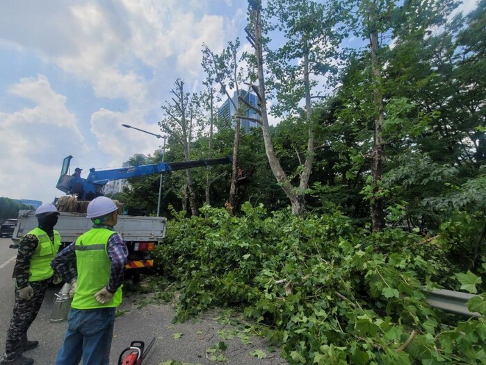 또한 구는 긴급 자체점검 결과에 따라 위험수목 23주를 정비할 계획이며, 추석 전 도로변 녹지대를 중점점적으로 추가 정비해 구민들의 안전한 귀성?귀경길에 보탬이 되고자 한다.