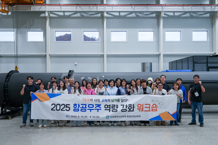 [인천=문찬식 기자] 인천광역시교육청(교육감 도성훈)은 9월 19일부터 20일까지 관내 중등 교사 25명을 대상으로 사천과 대전에서 ‘2025 항공우주 교사 역량강화 워크숍’을 개최했다고 밝혔다.