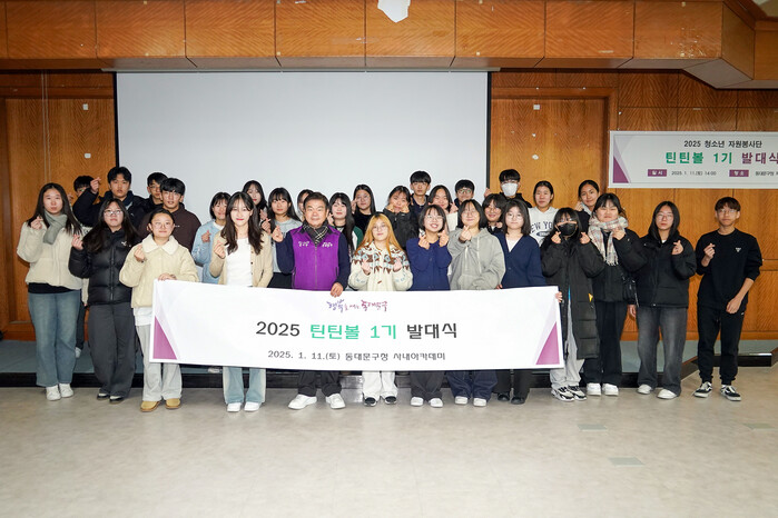 [시민일보 = 이대우 기자] 동대문구(구청장 이필형)는 지난 11일 구청 지하 2층 사내 아카데미에서 청소년 자원봉사단 ‘틴틴볼’ 1기 발대식을 성황리에 개최했다.