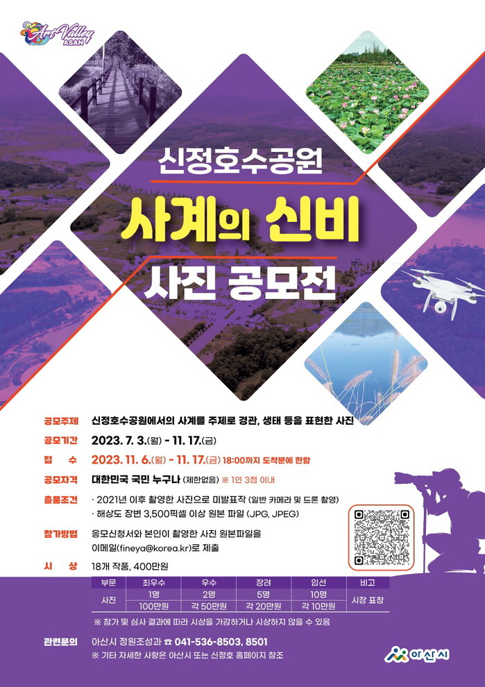 출품 조건은 신정호의 사계를 주제로 2021년 이후 일반 카메라 및 드론으로 촬영한 미발표 사진이다.